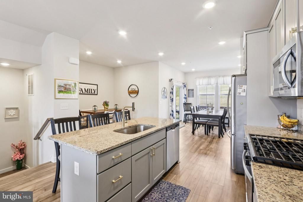 Step inside this contemporary three‑story townhome offering thoughtfully designed living space with 3 bedrooms, 2 full baths, and 2 half baths, complemented by a flexible lower‑level area suitable for work, exercise, or extended living needs. The main level features an open‑concept layout with large windows that enhance natural light, and a beautifully upgraded kitchen with a large center island, gray cabinetry, granite countertops, modern fixtures, and gold accents. From the expanded dining area, enjoy direct access to the deck or explore the option of converting the space into a seasonal sunroom. The upper level includes a well‑proportioned primary bedroom with a private bathroom and convenient access to laundry. Located in the Southern Lehigh School District and minutes from everyday amenities, the home’s newer systems, contemporary finishes, and efficient floor plan provide a streamlined living experience with the benefits of modern construction.